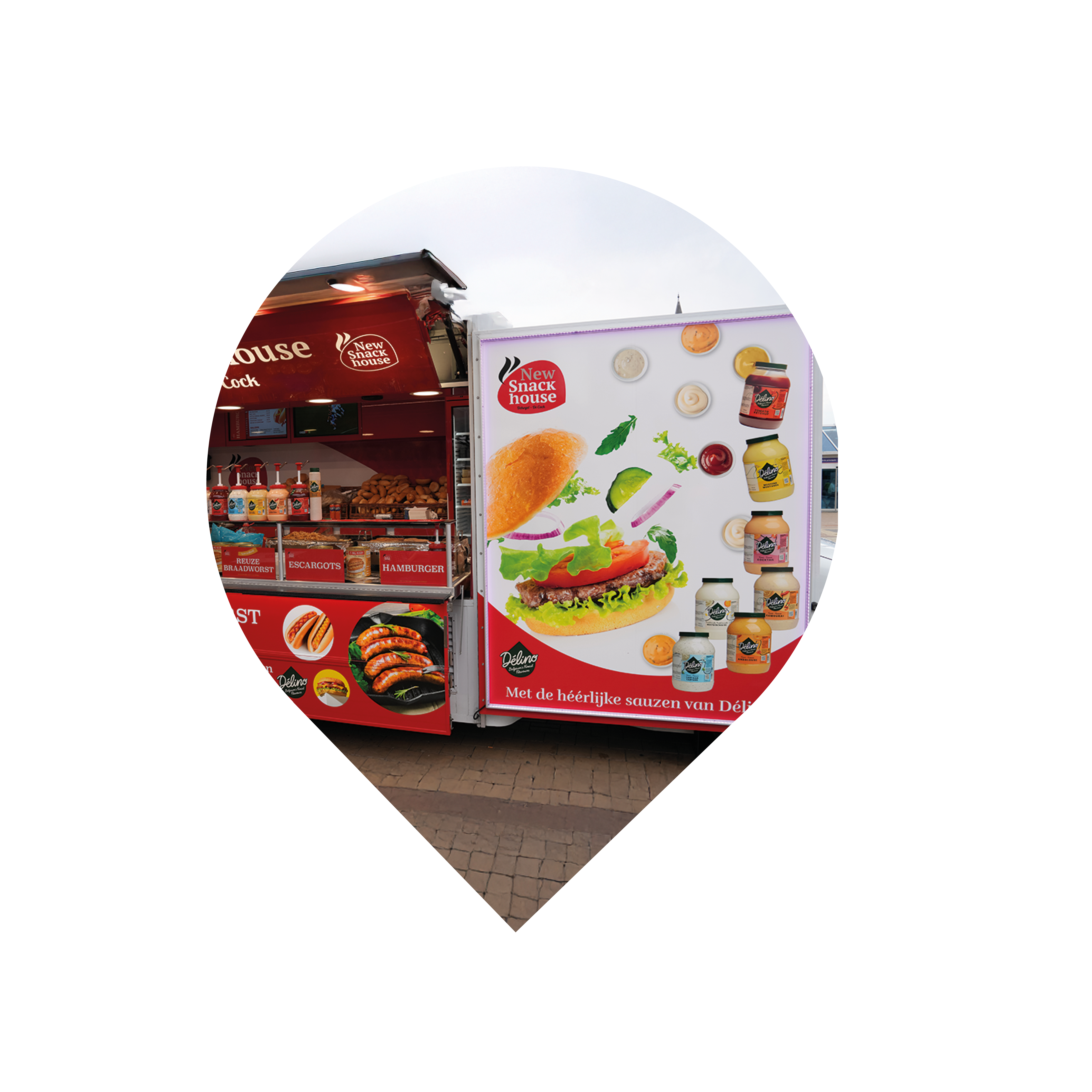 Bij New Snack House geniet je van hamburgers, hotdogs, Mexicano’s, braadworsten, zwarte en witte pensen. Voor elke snack is er een bijpassend aanbod aan Délino sauzen. Op de foodtrucks van New Snack House pronkt hun volledige Délino-assortiment, met de catchphrase: “Met de héérlijke sauzen van Délino”.