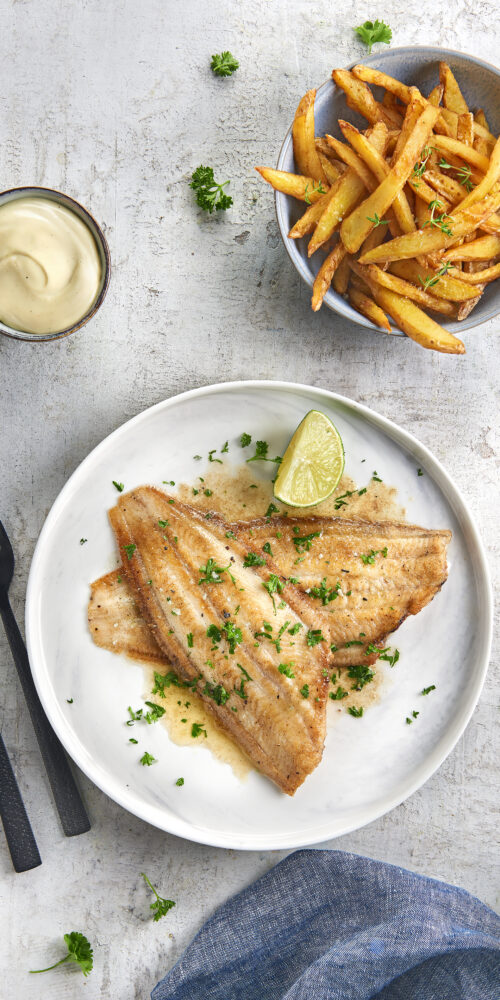 Gebakken zalm, krieltjes, groene asperges, Choronsaus